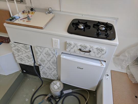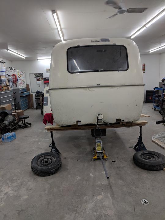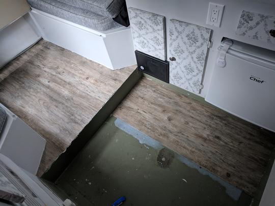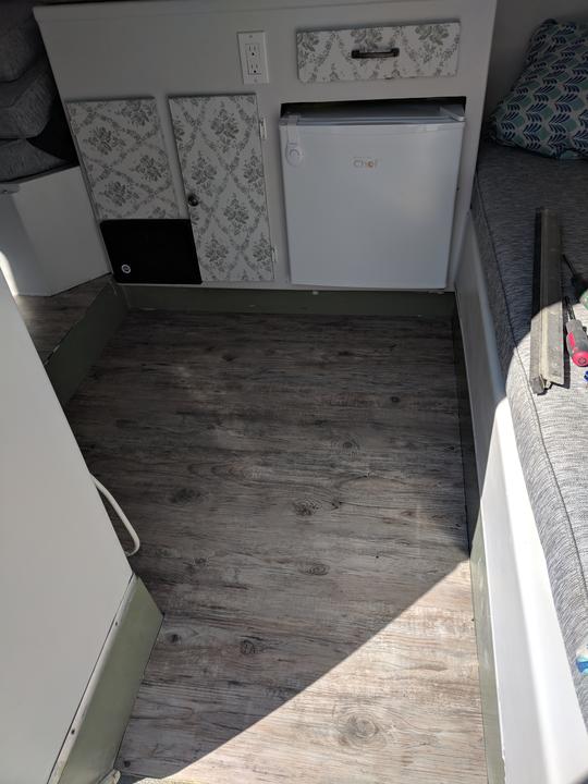 I dislike being hot when trying to seep. So I went and found a 8000 BTU Air Conditioner (Larger than needed but it was cheaper than the 5000 BTU.) First I created the platform for it and then once it was all balanced I added a sheet of stainless steel and punched a hole in the wheel well for air intake.