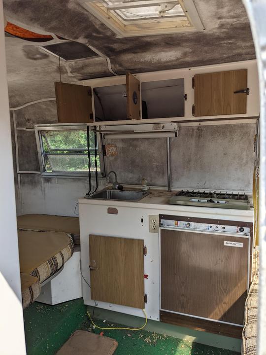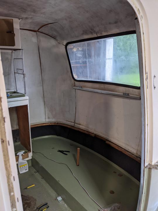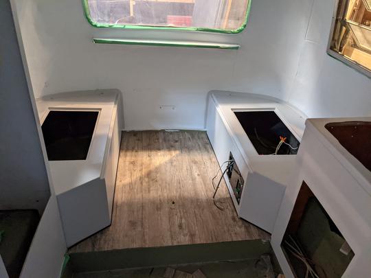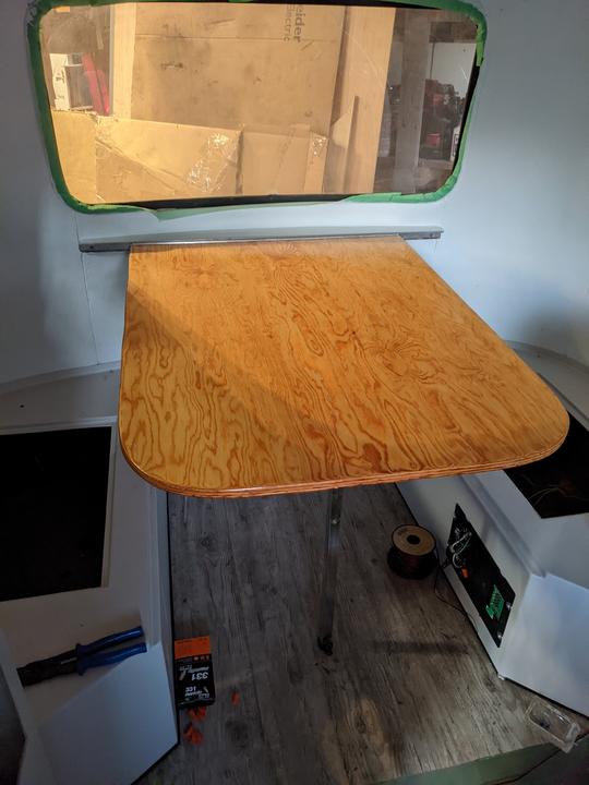 I dislike being hot when trying to seep. So I went and found a 8000 BTU Air Conditioner (Larger than needed but it was cheaper than the 5000 BTU.) First I created the platform for it and then once it was all balanced I added a sheet of stainless steel and punched a hole in the wheel well for air intake.